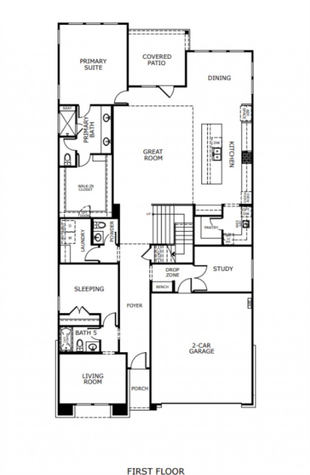 Plan 4063 is a thoughtfully designed two-story home offering a highly flexible layout with dedicated spaces for both everyday living and multigenerational needs. The main floor features an open-concept kitchen, dining, and great room, complemented by a prep kitchen and direct access to a covered patio. A standout feature is the private multi-generational suite, complete with its own living and sleeping areas, offering a unique level of flexibility. The primary suite is also located on the first floor, while upstairs includes a central loft and additional bedrooms, creating a comfortable balance of shared and private spaces.