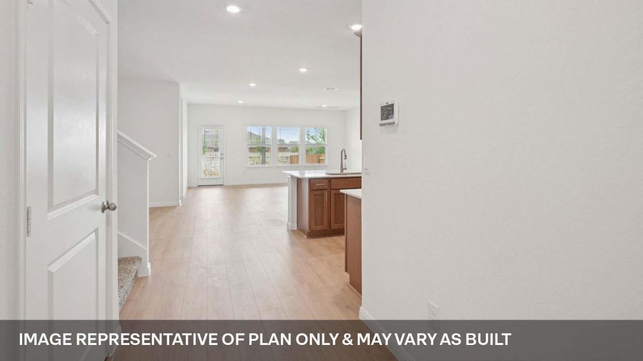 ESTIMATED COMPLETION JUNE. Images representative of plan only and may vary when built. The Ozark is a beautiful two-story home featured at our Bar W Ranch community in Leander, TX The home offers 2,536 square feet of living space, 4 bedrooms, a gameroom, and 3 bathrooms. There are 2 exterior elevations to choose from. As you enter the home and continue down the foyer, towards the center of the home, you'll find yourself in the open-concept kitchen and dining area that connects to the living space that provides plenty of natural light. The kitchen features a kitchen island, granite or quartz countertops, a large pantry and stainless-steel appliances throughout. Just off the living space is the main bedroom, bedroom 1, features a large bathroom with a walk-in shower and a huge walk-in closet. One secondary bedroom and full bathroom is also located on the first floor near the front of the home. Upstairs you will find a spacious game room, two additional bedrooms, a full bathroom, and a storage closet. Each bedroom includes carpeted floors and a closet. This home comes included with a professionally designed landscape package and a full irrigation system as well as our America's Smart Home package that offers devices such as the Qolsys IQ Panel, Video Doorbell, Alarm.com app, Honeywell Thermostat, a Smart Light Switch, Kwikset Smart lock, and more.