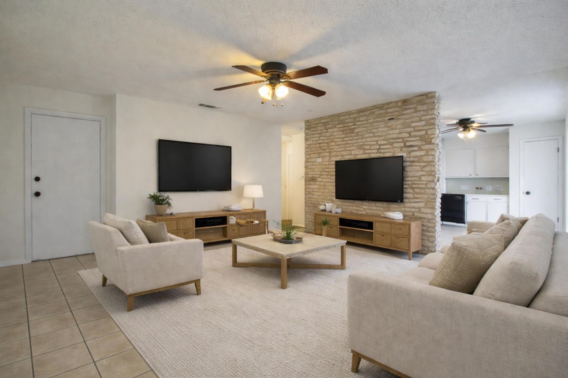 Charming single-story home with a functional layout and inviting indoor-outdoor living. The bright kitchen features ample cabinetry, gas range, dishwasher, and flows seamlessly into a spacious dining area filled with natural light. Tile flooring throughout the main areas offers easy maintenance and a clean, modern feel. The home includes three well-sized bedrooms and two full bathrooms, ideal for comfortable everyday living. Step outside to a generous private backyard with mature trees, perfect for relaxing, entertaining, or enjoying quiet outdoor space. Conveniently located with easy access to major roadways, shopping, and dining, this home offers both comfort and accessibility.